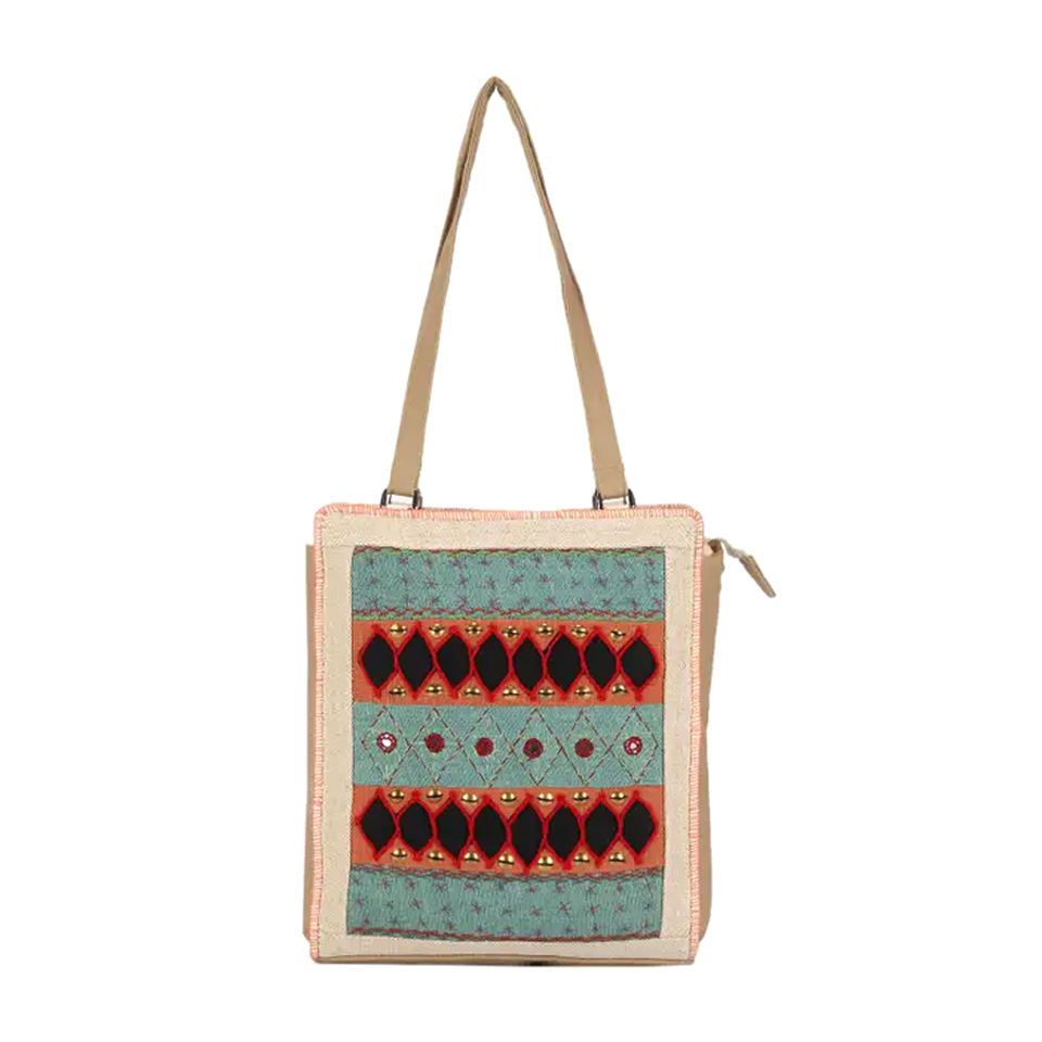 Jute Braided Color Handbag With Genuine Leather Handle