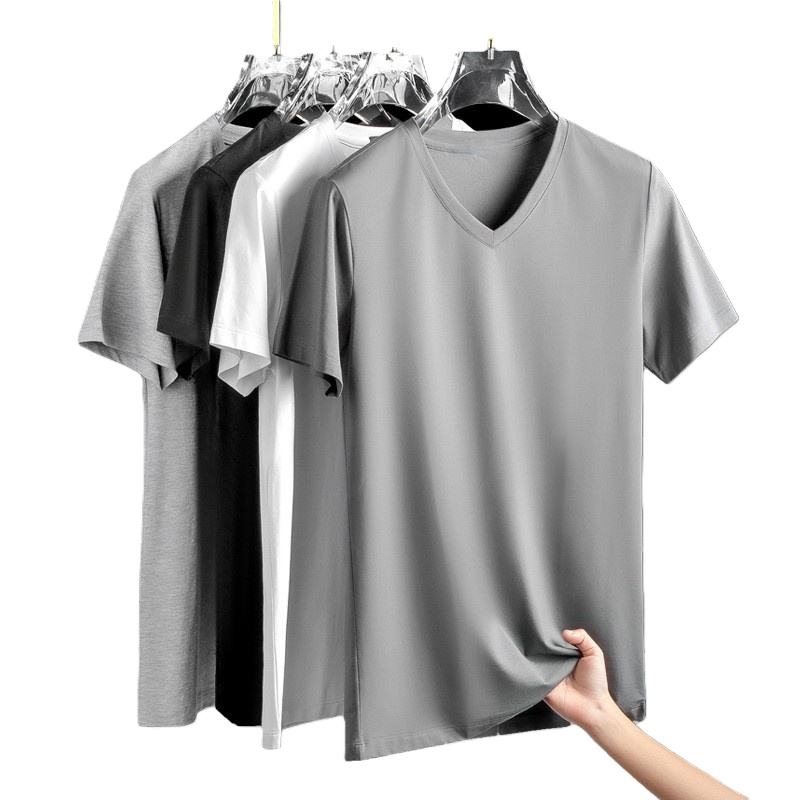 OEM Customized Logo Embroidery Summer Slim Fit V Neck Short Sleeve T Shirt for Men Shredded Milk Fabric Plus Size Casual T Shirt