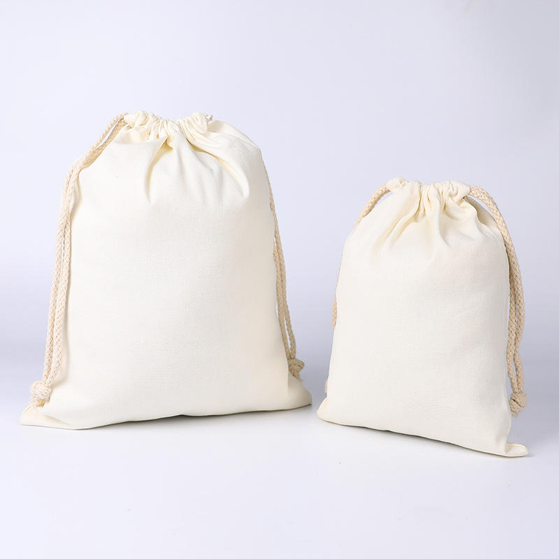 OEM Customized Logo Printed Dust Proof Travel Pouch Bag Small Organic Canvas Drawstring Cotton String Pouch Bag