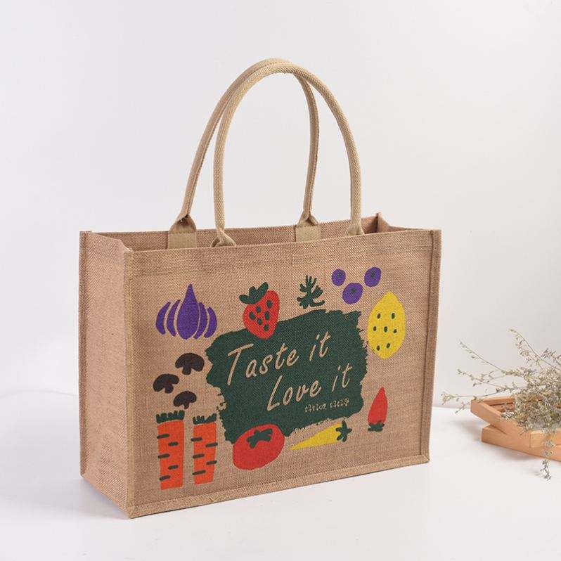 OEM Customized Printing Tote Bag With Inner Lamination Luxury Jute Eco Friendly Shopping Bag Featuring Different Design