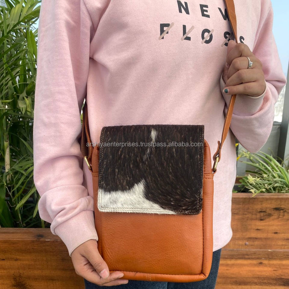OEM Customized Real Handcrafted Hair on Hide Fur Leather Handbag Women Stylish High Quality Genuine Leather Luxury Shoulder Bag