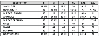 Front, back, Left Sleeve, Right Sleeve, lower hem, back neck