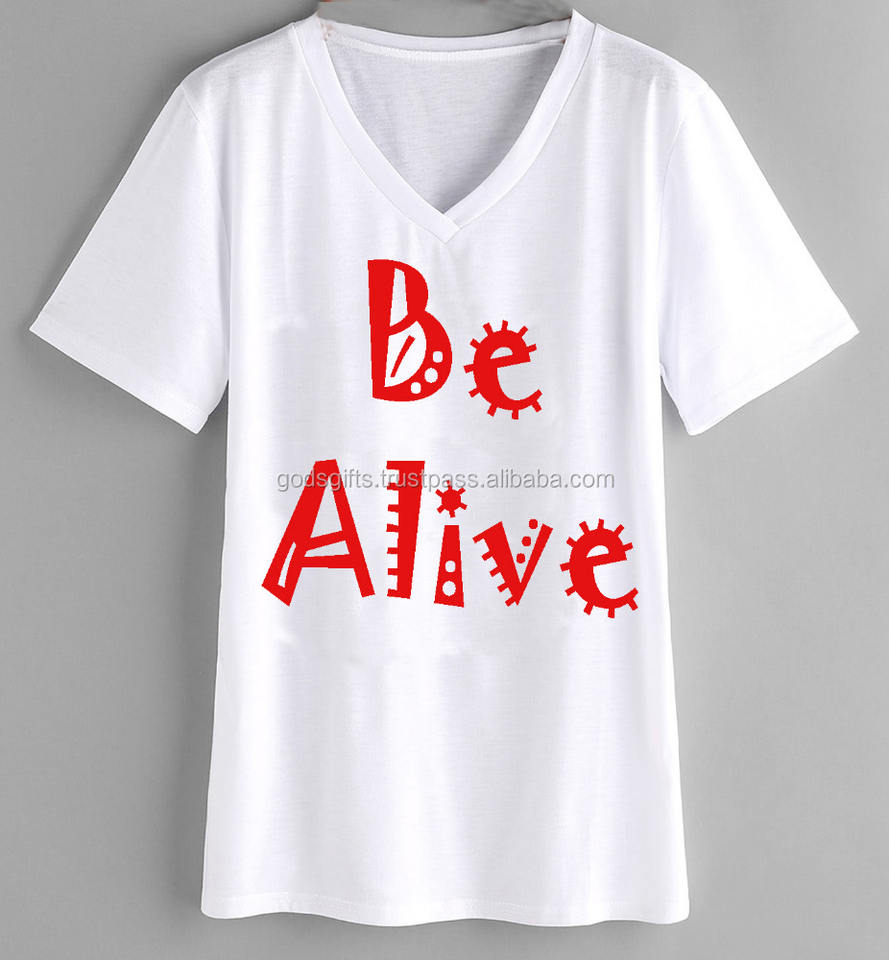 OEM Deep V-Neck T-Shirt Fashionable Printed Design Latest Jersey Fabric Solid Pattern Plus Size Direct Export From Tirupur India