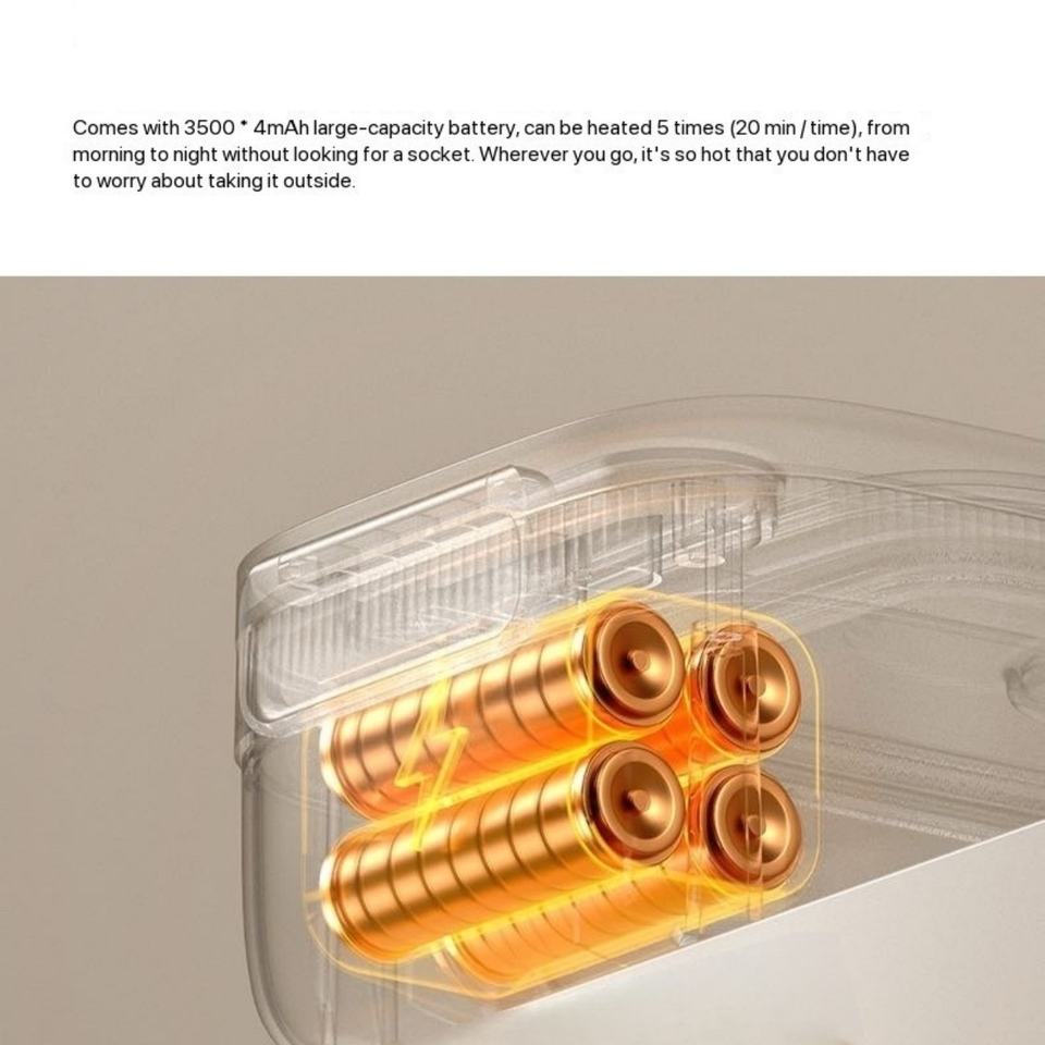 OEM Design 14000Mah Battery-powered Rechargeable Lunch Box Portable Travel Cordless Heated Food Warmer for Outdoor