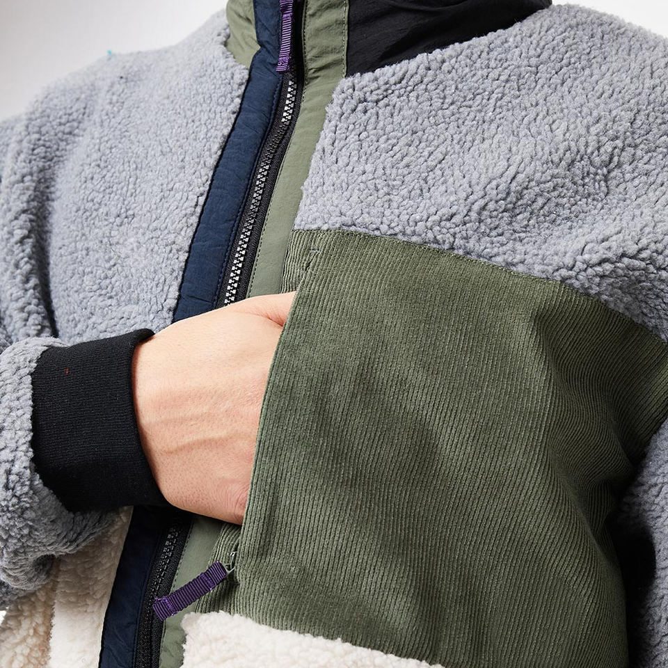 OEM Design Hooded Full-Zip Fleece Sherpa Jacket Custom Embroidered Patchwork Winter Wool Outwear for Men