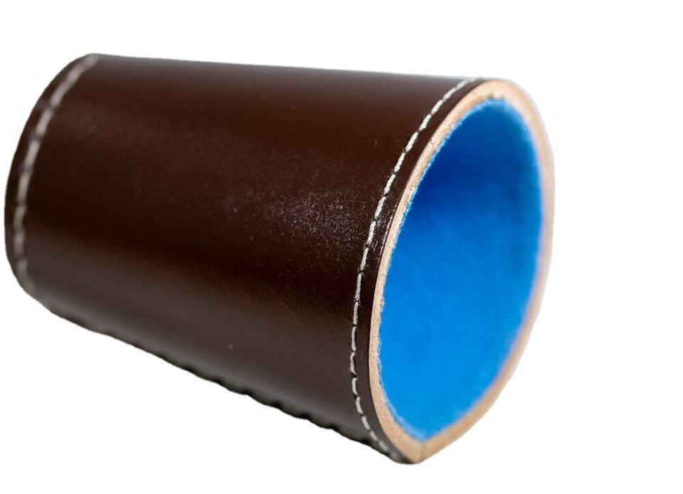 OEM Design Wholesale High Quality Custom 100% Genuine Leather Brown Dice Cup Soft Blue Velvet