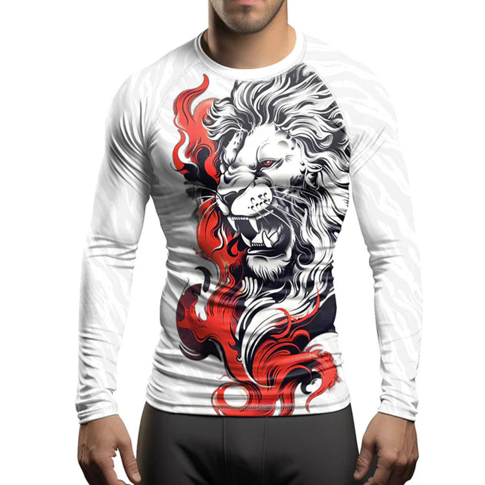 OEM Digital Print Compression Breathable Quick Dry UPF50+ 220g Gym Shirts Surfing Long Sleeve Custom Logo BJJ MMA Rash Guard