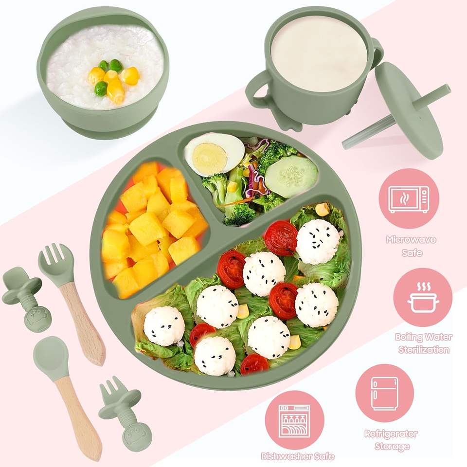 OEM Factory BPA Free Toddler Baby Training Cup Suction Plates Bowls Kids Dining Tableware Led Weaning Silicone Baby Feeding Set