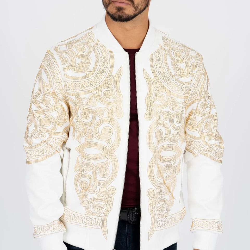 OEM Factory Custom Design Bomber Jacket Streetwear Vintage Embroidery Rhinestone Men Bomber Jacket