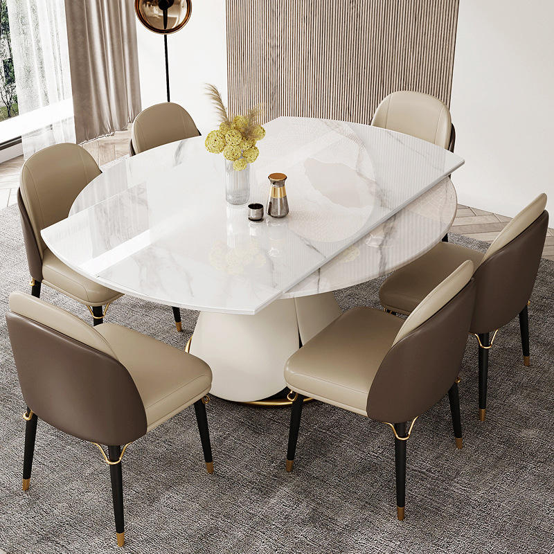 OEM Factory Custom Made Stain Scratch Resistant Marble Stone Slate Round Extendable Dining Room Table for 6/8/10 Person