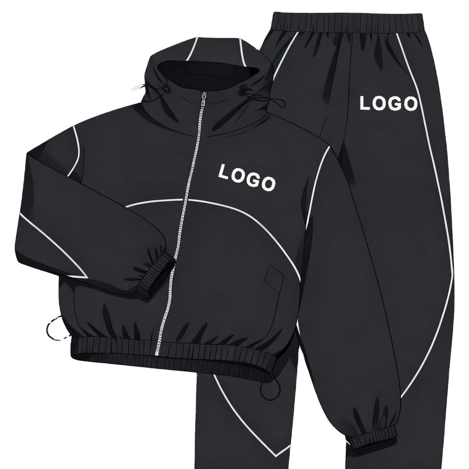 OEM Factory Custom Reflective Hooded Breathable Winter Windbreaker Jacket Pants Men Tracksuits Streetwear Printed Custom Colors