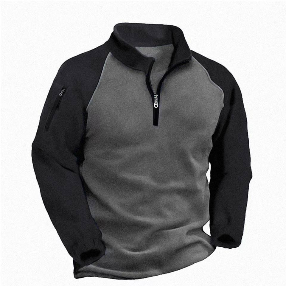 OEM Factory Custom Tactical Fleece Jacket for Men Stand Collar Color Block Winter Pullover Essential Plus Size Hoodie Sweatshirt