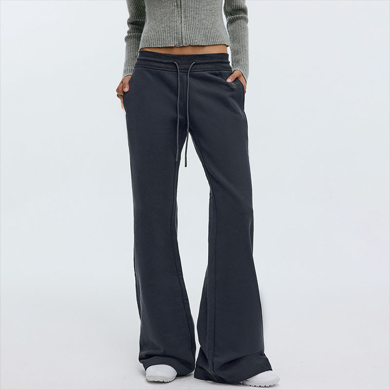 OEM Factory Custom Yoga Pants Wholesale Women Cotton Sports Pants Side Pocket Drawstring Flared Sweatpants