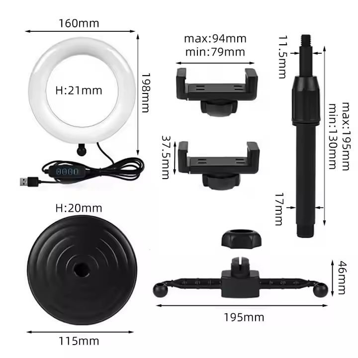 OEM Factory Outlet RGB 6 Inch Ring Light Beauty Wired Light Live Streaming Table Desktop Disc Holder With Dual Clips LED Lights