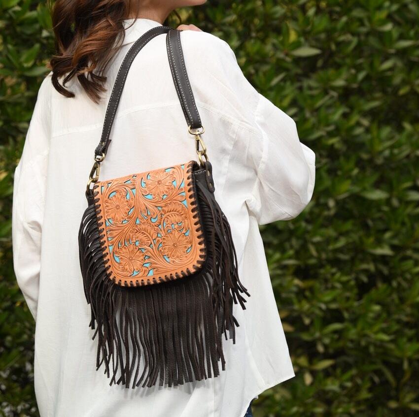 Product name:Yellow Saddle Blanket Clutch with Tooled Leather
