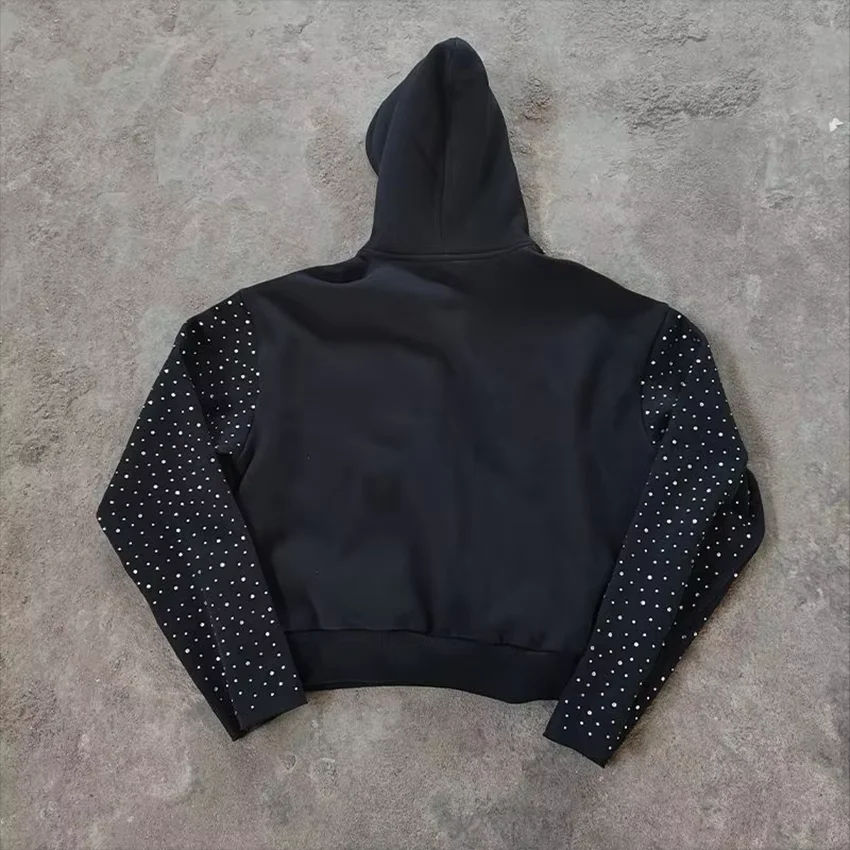 OEM Factory Wholesale High Quality Acid Wash Rhinestone Tracksuits Custom Logo Oversized Acid Wash Tracksuits Full Zip Tracksuit
