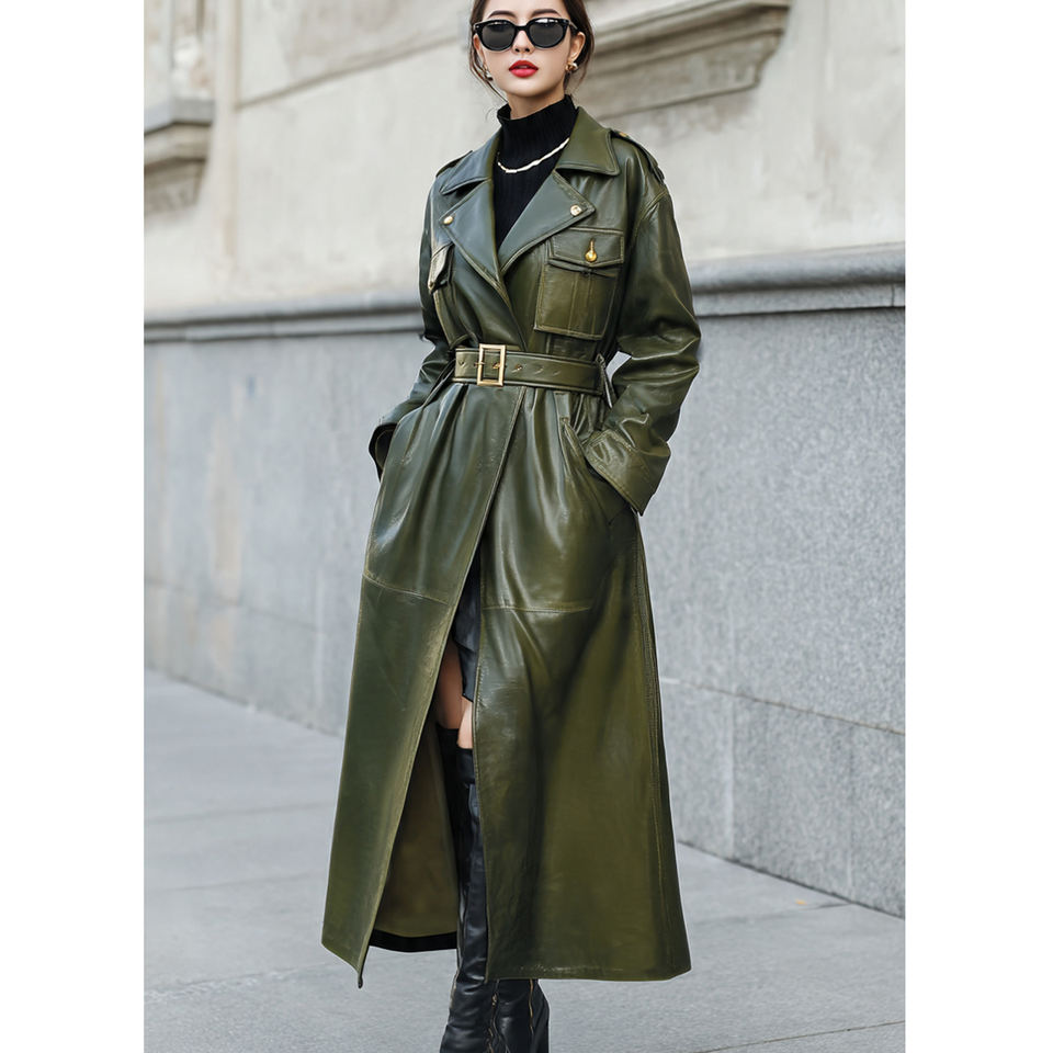 Trench Leather Long Coat Women