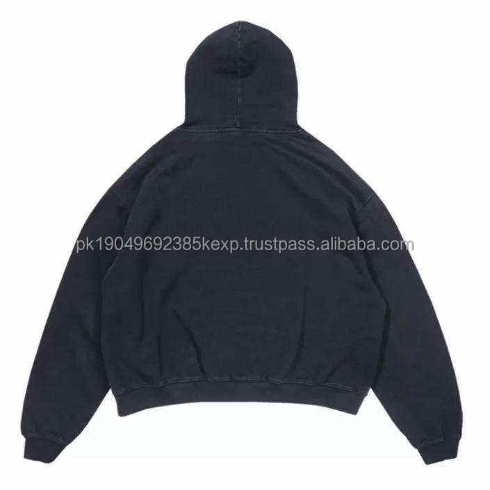 OEM Fashionable 300 Gsm Pullover Hoodies for Men Winter Vintage Wash Hoodie in Black White Cotton Material With Emboss Printing