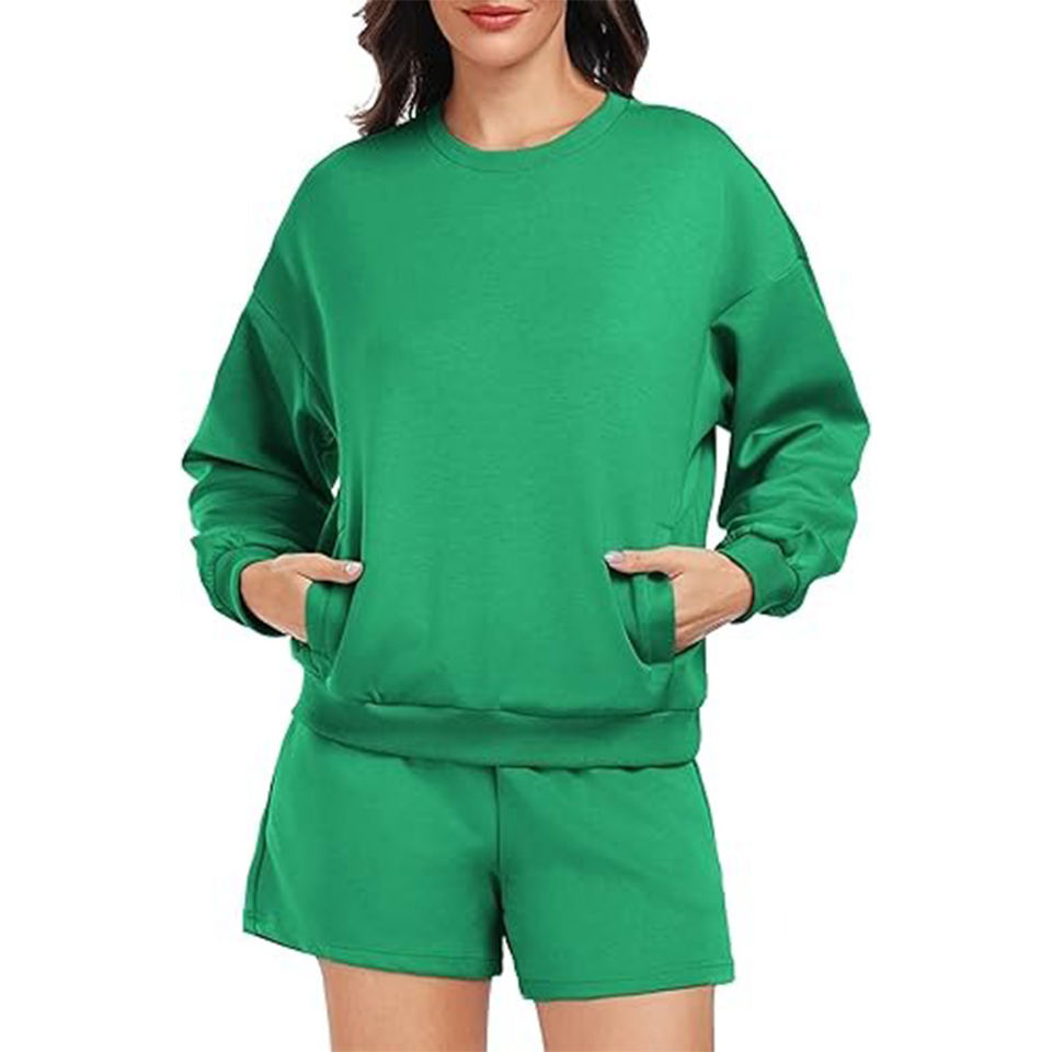 Product Name:Drop Shoulder Long Sleeve Hoodie and Shorts Set