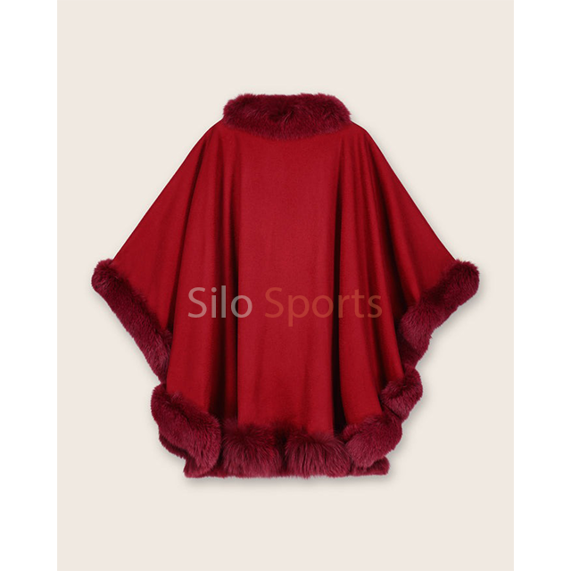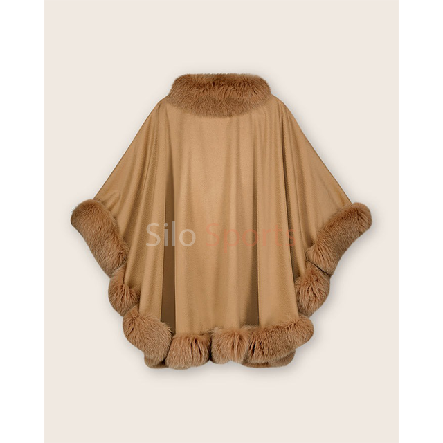 OEM Finished Women's Cashmere Wool Fox Fur Trim Breathable Windproof Heated Winter Cape Low MOQ