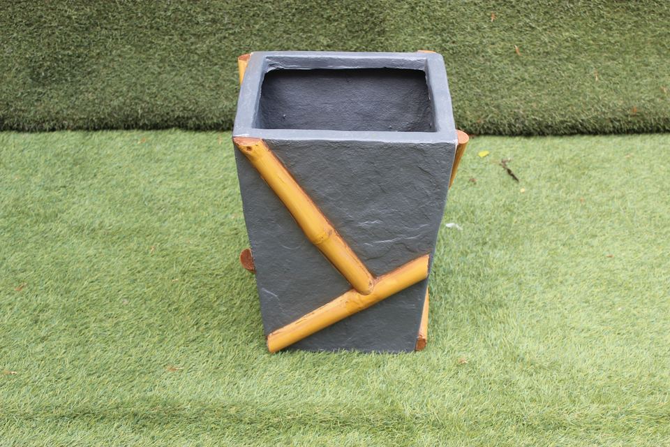 OEM Grey FRP Bamboo Look Vertical Designer Planter Hand Carved Flower Pots for Home Garden Office Floors Bulk Quantity