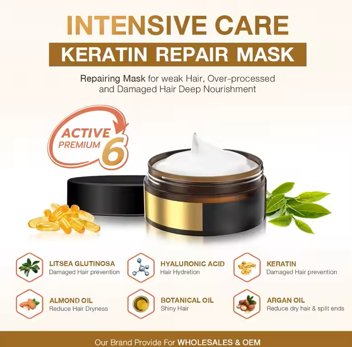 OEM Hair Care Intensive Care Keratin Repairing Mask With Almond & Botanical Oil for All Weak Hair Type Damage Hair From Thailand