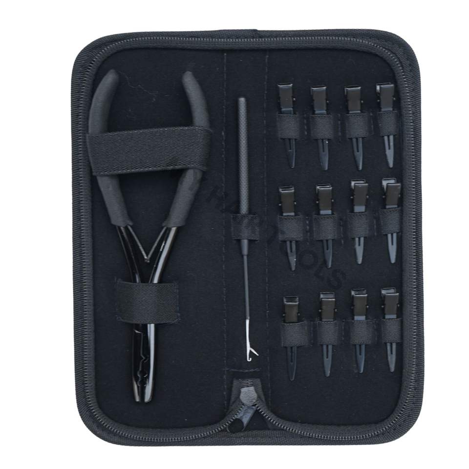 OEM Hair Extension Pliers Kit with Micro Bead Hair Extension Tool kit Sectioning Clips Loop tool Compact Case salon use tools