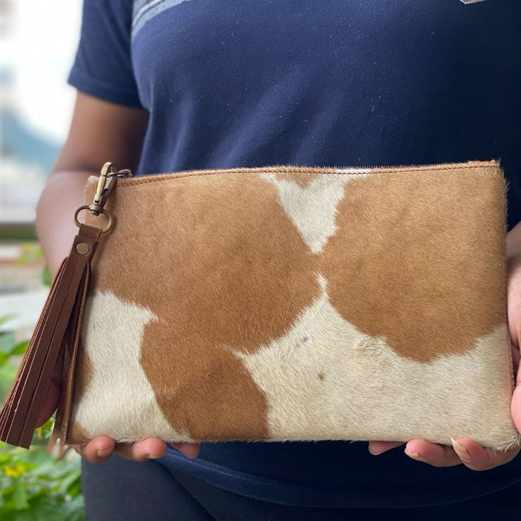 OEM Hair on Cowhide Genuine Leather Wristlet & Tassel Pouch Premium High Quality Handmade Leather Western Ladies Purse Wallet