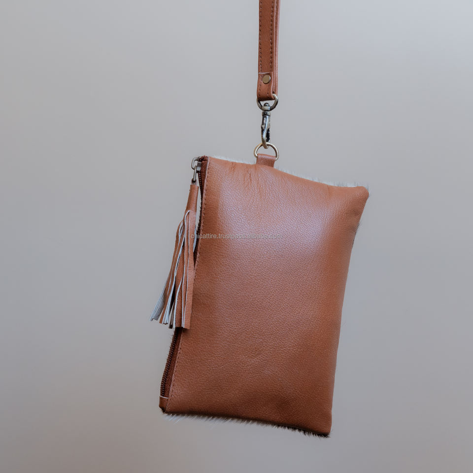 OEM Hair on Cowhide Genuine Leather Wristlet & Tassel Pouch Premium High Quality Handmade Leather Western Ladies Purse Wallet