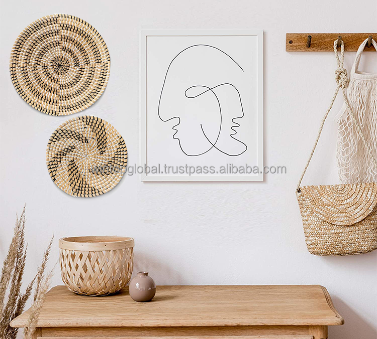 OEM Handicraft Seagrass Wall Hanging Woven Basket Decorative Storage Hanging Wall Decorations for Home Hanging