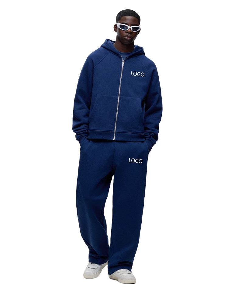 OEM Heavyweight 500gsm Cotton Fleece Hoodie Jogger Set Custom Printed Zip up Hoodie Raglan Sleeves Oversize Drop Shoulder Design