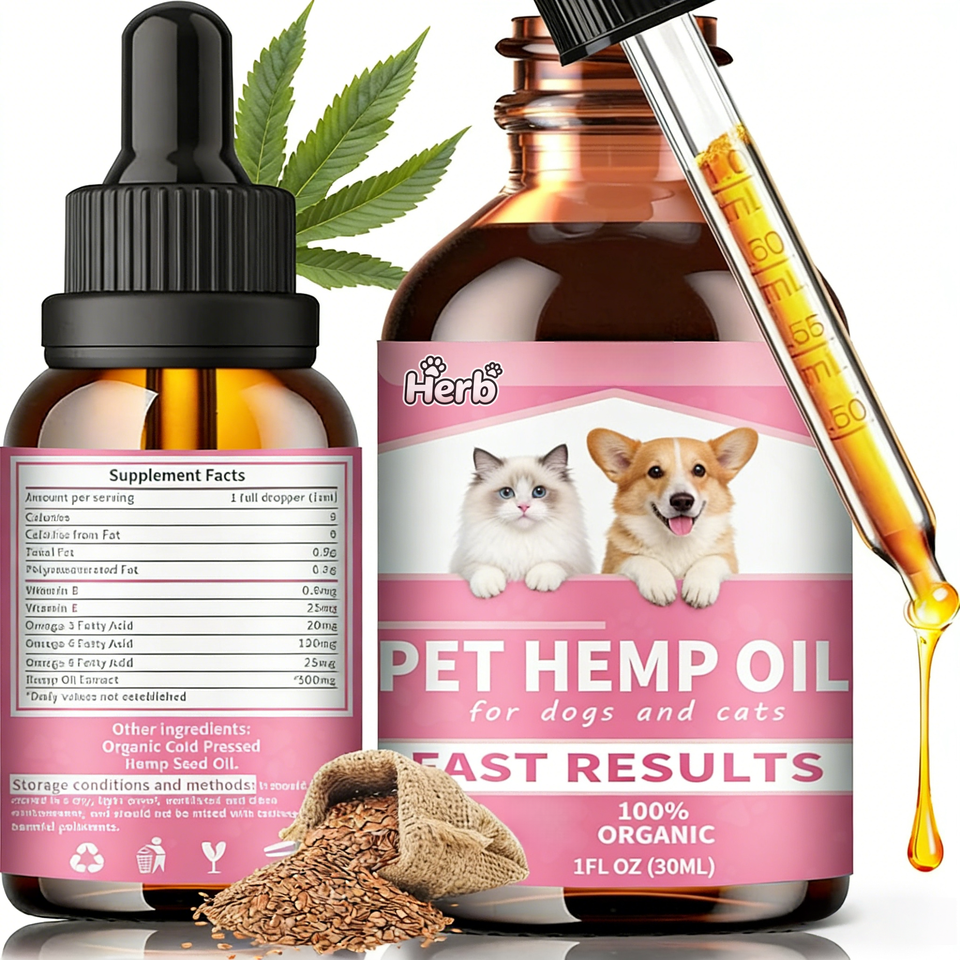 OEM Hemp Oil for Dogs & Cats Anxiety & Stress Relief Drops Omega 3-6-9 Helps with Pain Sleep & Calming for Pets & Fish