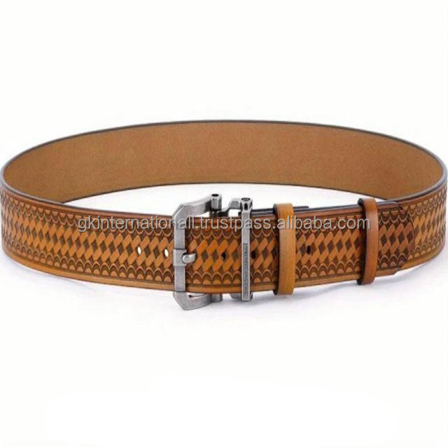 OEM High Quality Casual Western Antique Silver Alloy Buckle Custom made Western Leather Tooling Belts for Unisex