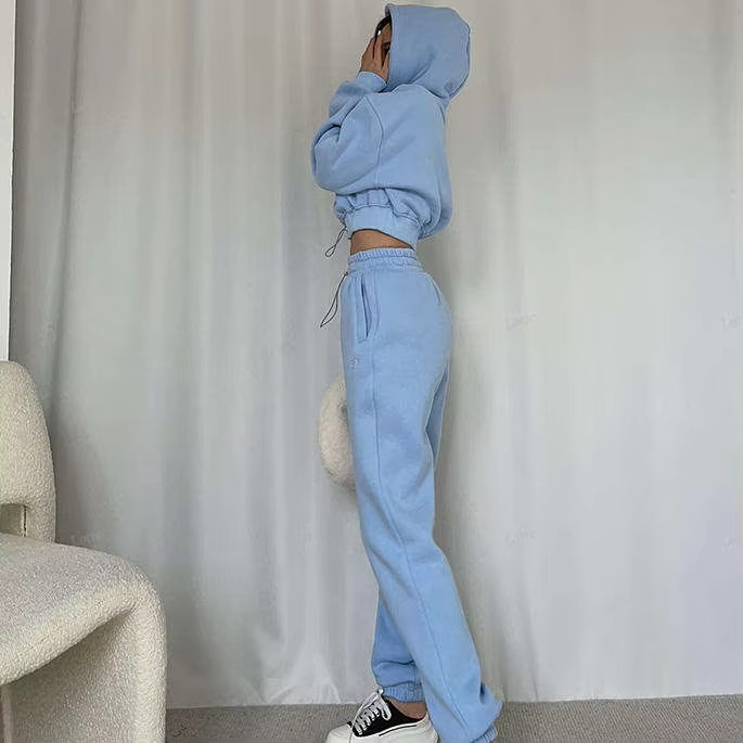OEM High Quality Fleece Cotton Sweatpants and Hoodies Set Outdoor Cropped Hoodie Top Two Piece Set Women Clothing Street Wear