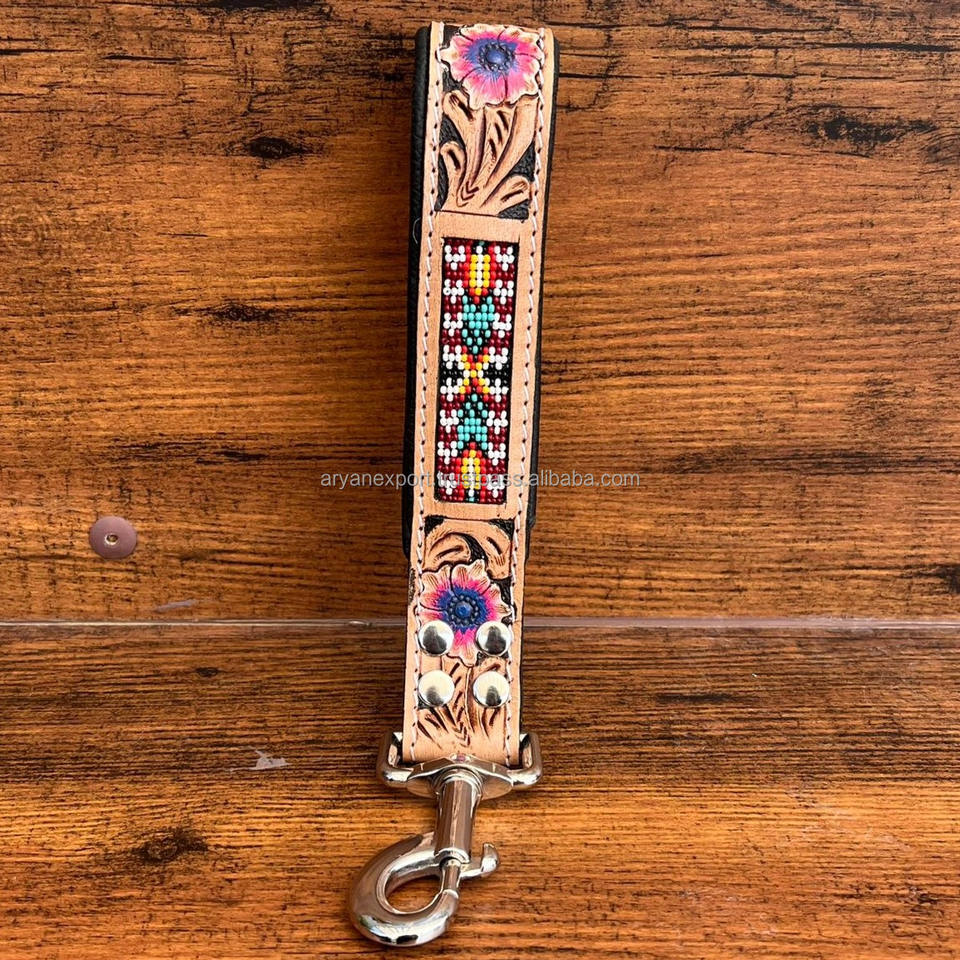 OEM High Quality Heavy Duty Pet Leash Cow Leather Short Traffic Lead Handle for Control Adjustable Designer Hands Free Dog Leash