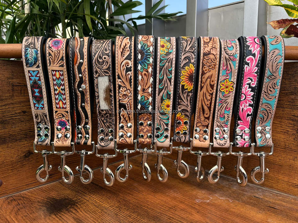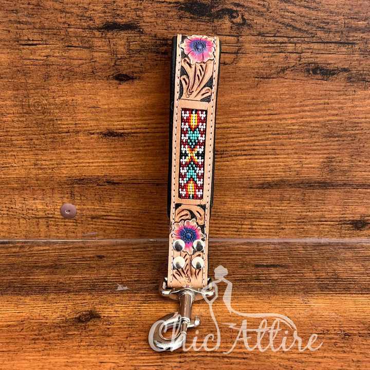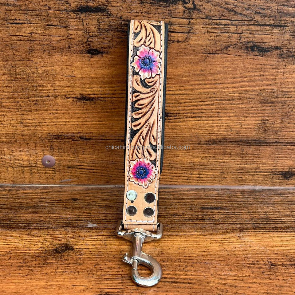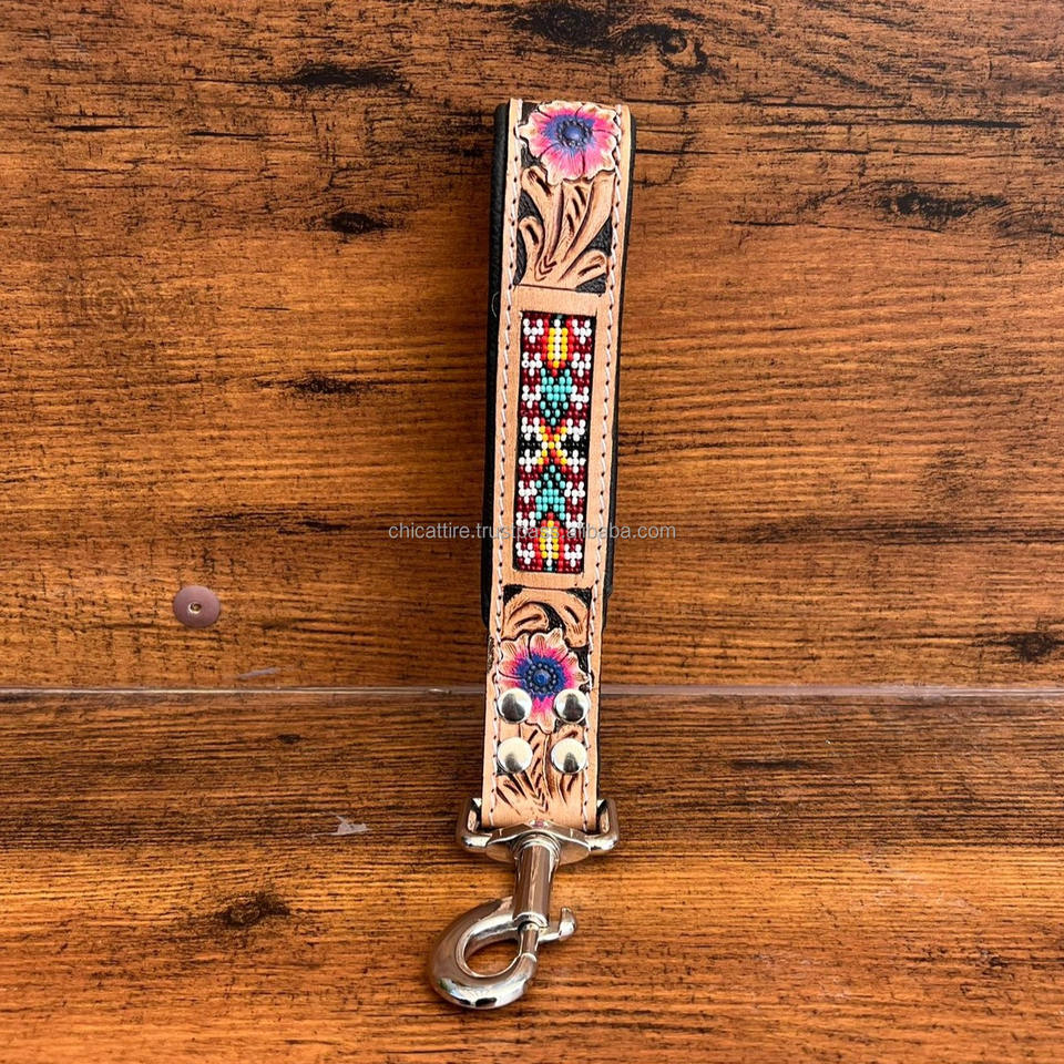 Hand Tooled Leather Traffic Dog Lead
