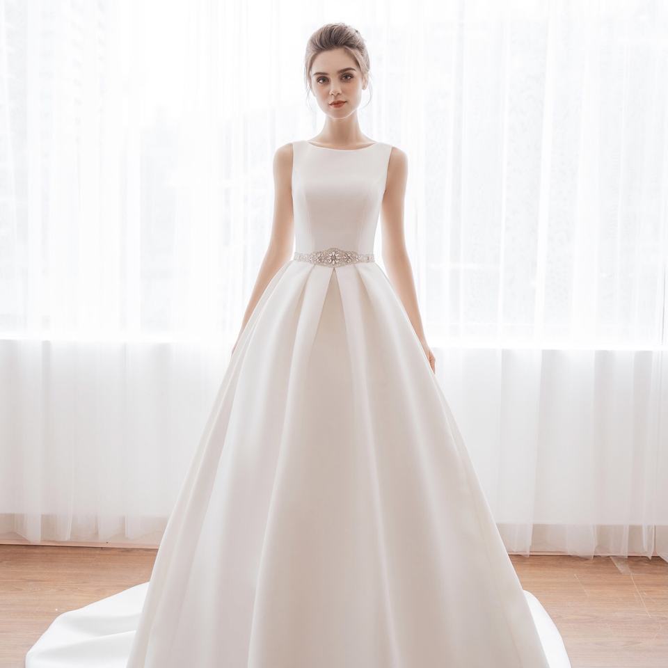 OEM High Quality Satin Modern Ball Gown Wedding Dress Elegant Long Skirt Plus Size Lace Crystal Features Wholesale TNBPno24