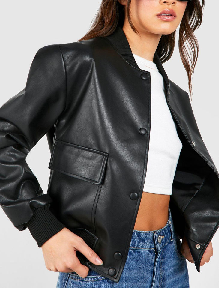 OEM High Quality customised cropped leather varsity jacket for women's custom Embroidery patches genuine leather ladies jacket