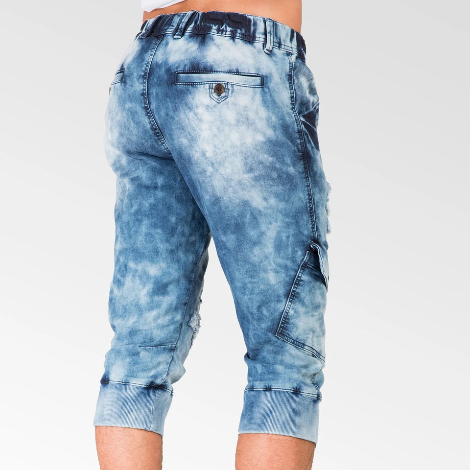 OEM High Street Solid Streetwear Vintage Washed Cargo Pants Casual Mid Waist Denim Jort Men Custom Embroidered Logo 100% Cotton