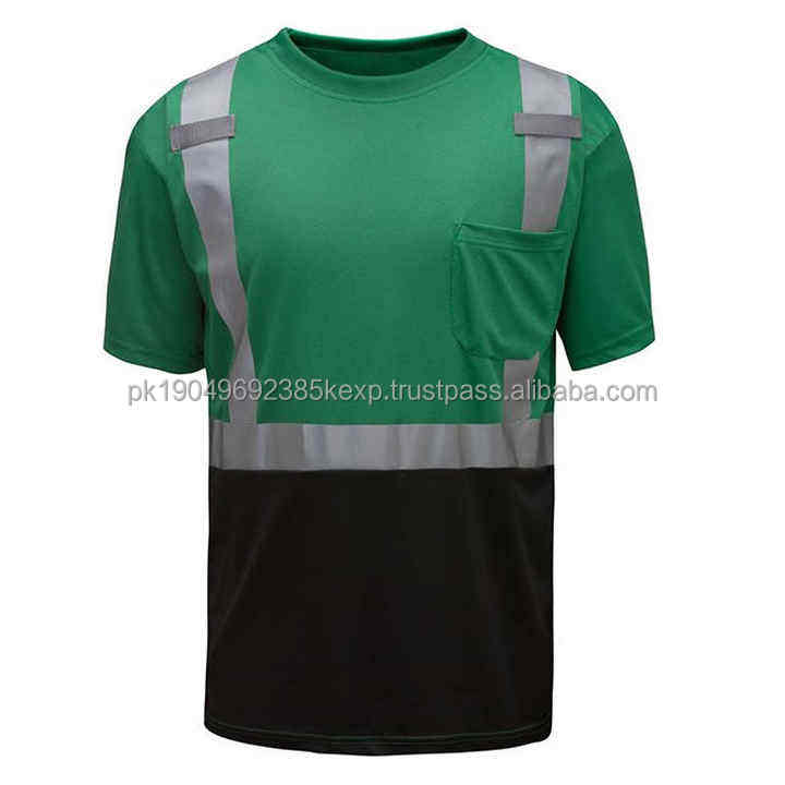 OEM High Visibility Breathable Black Reflective Tee Shirt Custom Logo Security Wholesale Men's Safety T-Shirts