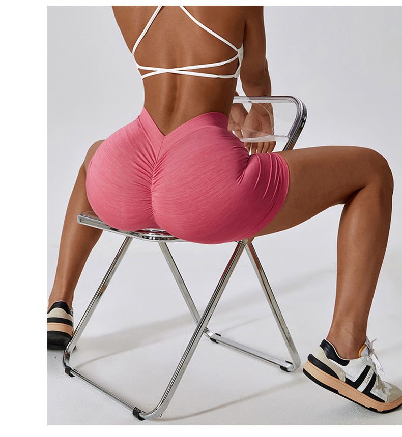 OEM High Waist Women's Breathable Yoga Shorts Seamless v Back Sports Shorts for Outdoor Riding Training Solid Fitness Tight