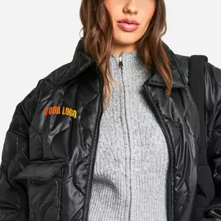 OEM Hot Sale Women's Black Waterproof Eco-Friendly Winter Puffer Jacket with Cotton Lining Cropped Long Sleeves Bubble Design