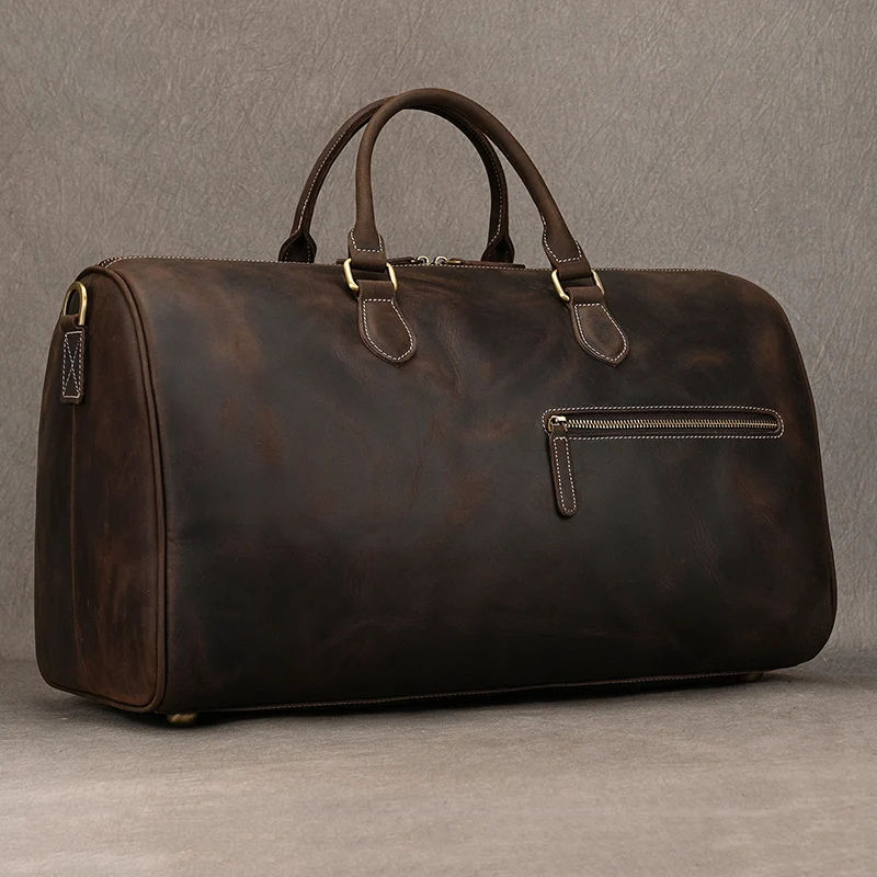 OEM Hot Selling Custom Retro Real Cow Genuine Leather Gym Sport Travel Duffel Bag with Laptop Compartment Pen Slots