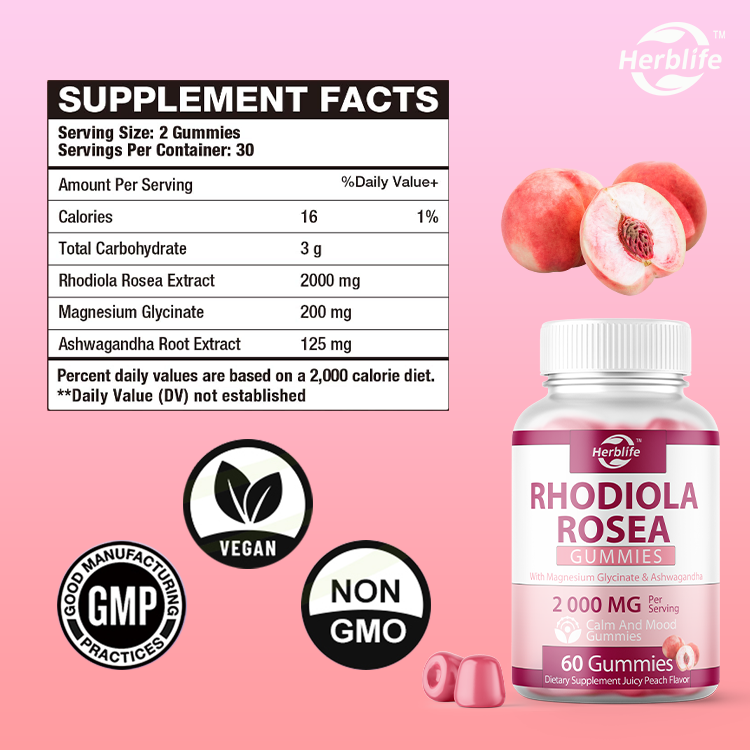 OEM Hot-selling Sugar- Free Rhodiola Rosea Gummies - Antioxidant, Mood, Immunity &Energy Support, Supports Cognitive Performance