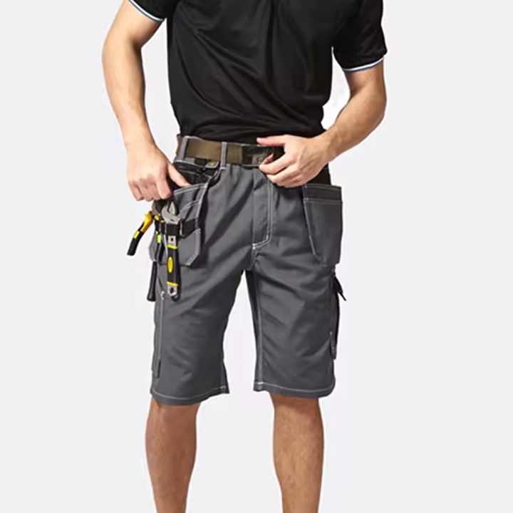 OEM Industrial Grade Reflective Denim Cargo Pants Professionals Hammer Loop Tool Carrier Multiple Pocket Work Shorts High