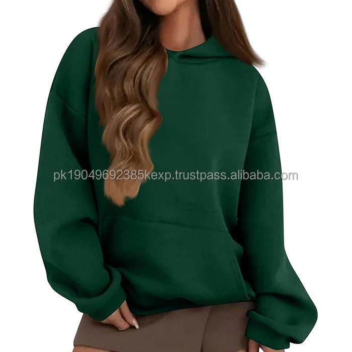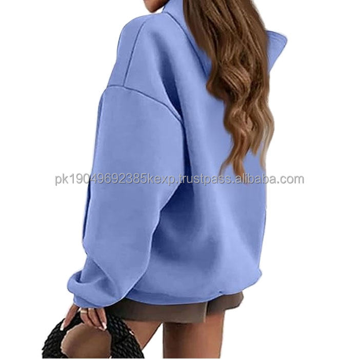 OEM Knitted Turtleneck Hoodie for Women Drop-shoulder Zip-up Blue Solid Color No Drawstring with Front Logo Winter Short Sleeve