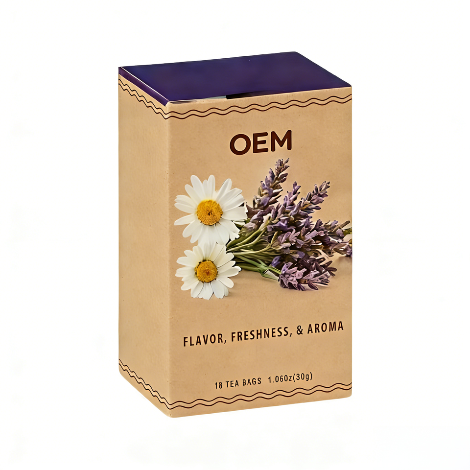 OEM Lavender Chamomile Blended Tea Bags-Relaxing & Calming Herbal Tea Promotes Sleep Reduces Stress Health Food Grade 1.5g*18