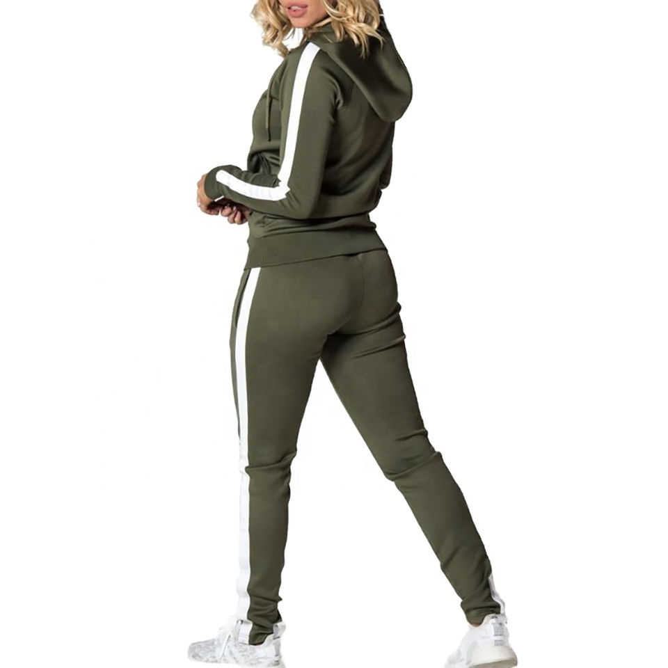 OEM Logo Jogger Tracksuit Custom Workout Top Woman Sets Cotton Made Tracksuit Two Piece Pants Set Oversize Side White Striped