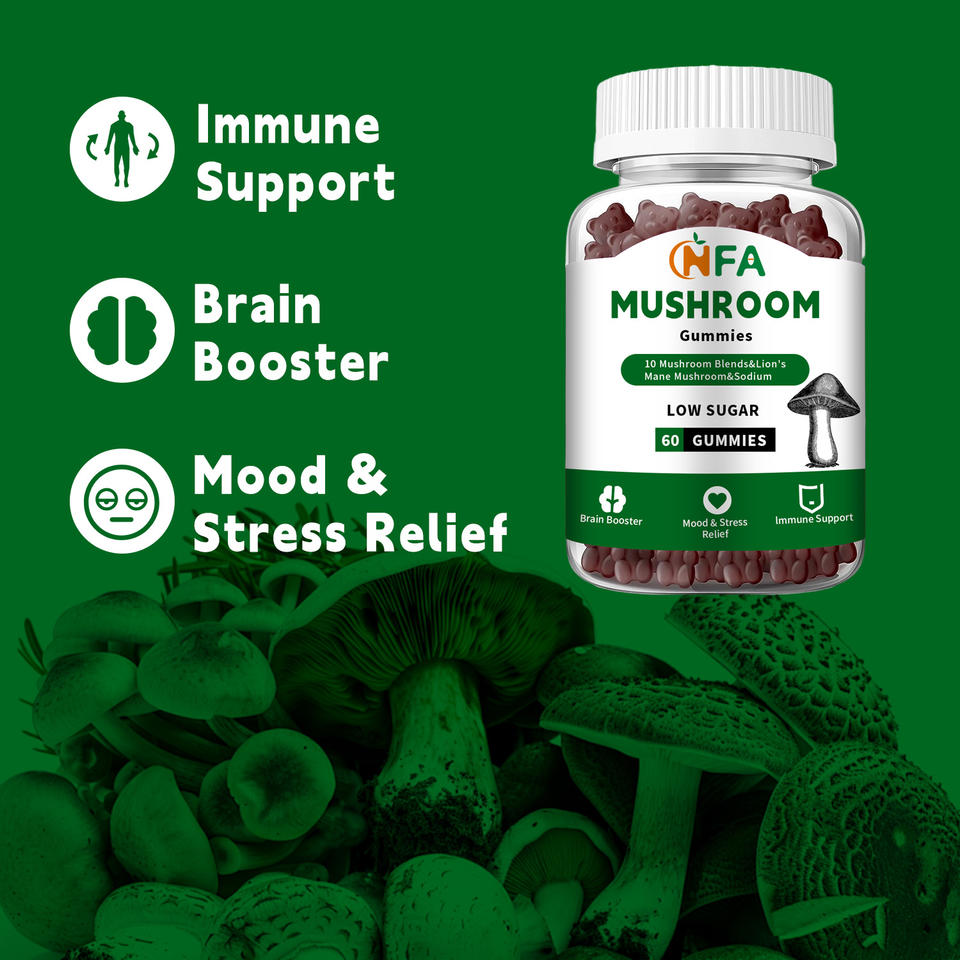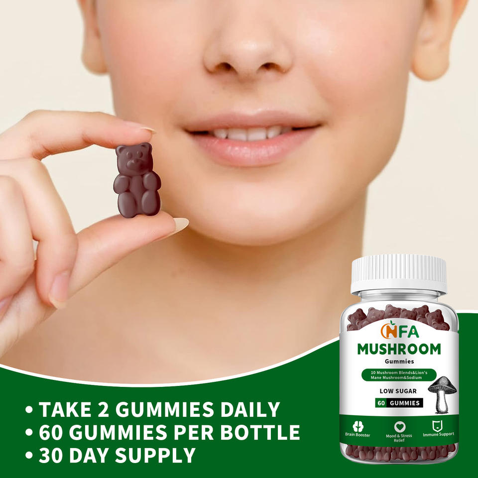 OEM Low Price Mushroom Gummies with 10 Mushroom Blend Good for Teens & Kids Support Brain Booster Mood & Stress Relief Gummies
