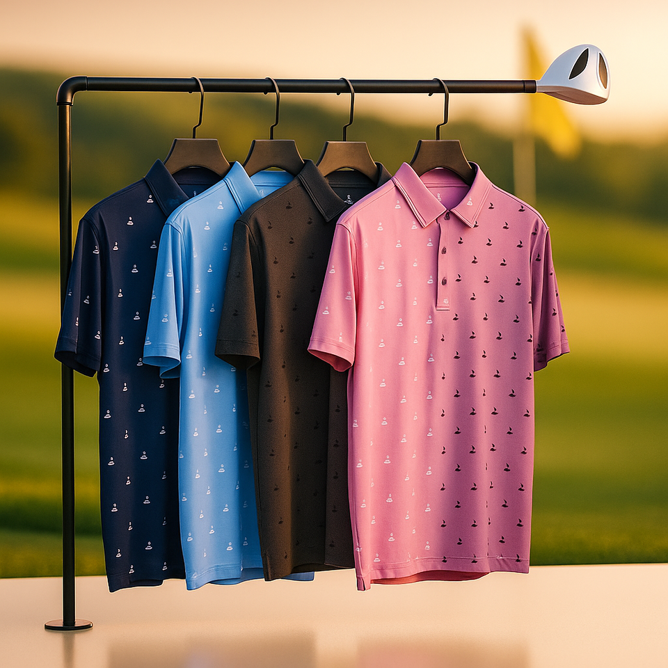 OEM Luxury High Quality Elastic All Over Print Mens Pink 100% Polyester Golf Polo with Custom Embroidery logo Polo Shirts